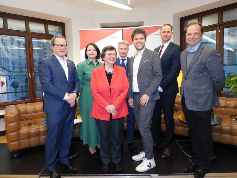 Bild v.l.n.r.: Rainer Newald, Saskia Gutmann, Monika Rosen, Hans Peter Portner, Daniel Nutz, Jörg Moshuber, Philipp Bodzenta